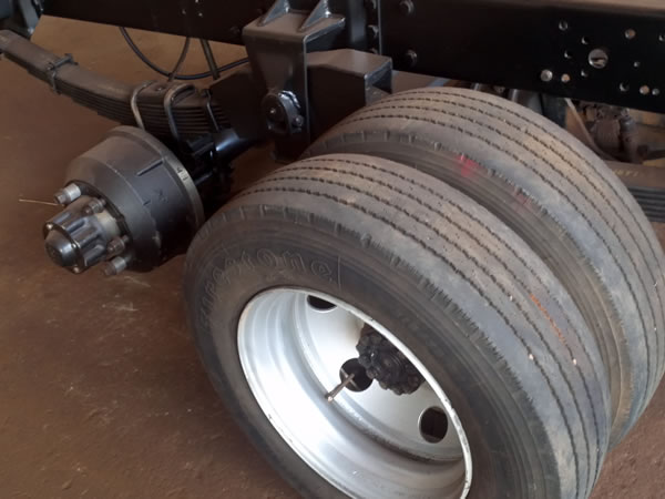 Utilize também em conjunto com o terceiro eixo, o suspensor pneumático, que proporciona expressiva economia de pneus e combustível e demais componentes nos deslocamentos sem carga. O suspensor é ligado ao circuito pneumático e comandado através de válvulas simples de fácil manuseio, suspendendo o eixo do solo.